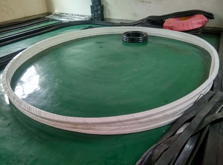 反應(yīng)堆一回路抽真空排氣裝置密封環(huán)是使用在核電站大修期間的一個(gè)產(chǎn)品,屬于反應(yīng)堆一回路抽真空排氣裝置的一個(gè)部件,整個(gè)反應(yīng)堆一回路抽真空排氣裝置包括假頂蓋本體、密封環(huán)、抽真空臺(tái)架、吊具、連接軟管等,密封環(huán)的功能是保證在反應(yīng)堆堆坑無(wú)水工況下假頂蓋本體扣在反應(yīng)堆壓力容器法蘭密封面上之后依靠假頂蓋本體自重可實(shí)現(xiàn)靜態(tài)自密封,之后假頂蓋內(nèi)部抽真空到 100 mbar情況下密封環(huán)仍能實(shí)現(xiàn)可靠密封。另外一種工況是,在反應(yīng)堆堆坑都充滿水的情況下,帶密封環(huán)的假頂蓋在水下扣在反應(yīng)堆法蘭密封面上,要求密封環(huán)能實(shí)現(xiàn)自密封,然后假頂蓋內(nèi)部排水到一定空間,進(jìn)行反應(yīng)堆管道相關(guān)維修工作,之后再抽真空到 100mbar,此時(shí)密封環(huán)最大承受 1.9 個(gè)大氣壓和蓋子的自重,需保證密封環(huán)不壓潰且抽真空過(guò)程中有良好的密封性可靠性。本公司生產(chǎn)的密封環(huán)為國(guó)內(nèi)首創(chuàng),直徑4.14米整圈一次性壓出,無(wú)接口,多年來(lái)已經(jīng)應(yīng)用于大亞灣核電站,陽(yáng)江核電站,寧德核電站,防城港核電站,質(zhì)量可靠,如有需要請(qǐng)與中科華核電技術(shù)研究院聯(lián)系,因此產(chǎn)品為我們雙方共同研制開(kāi)發(fā),需要經(jīng)過(guò)雙方同意才可以生產(chǎn)。